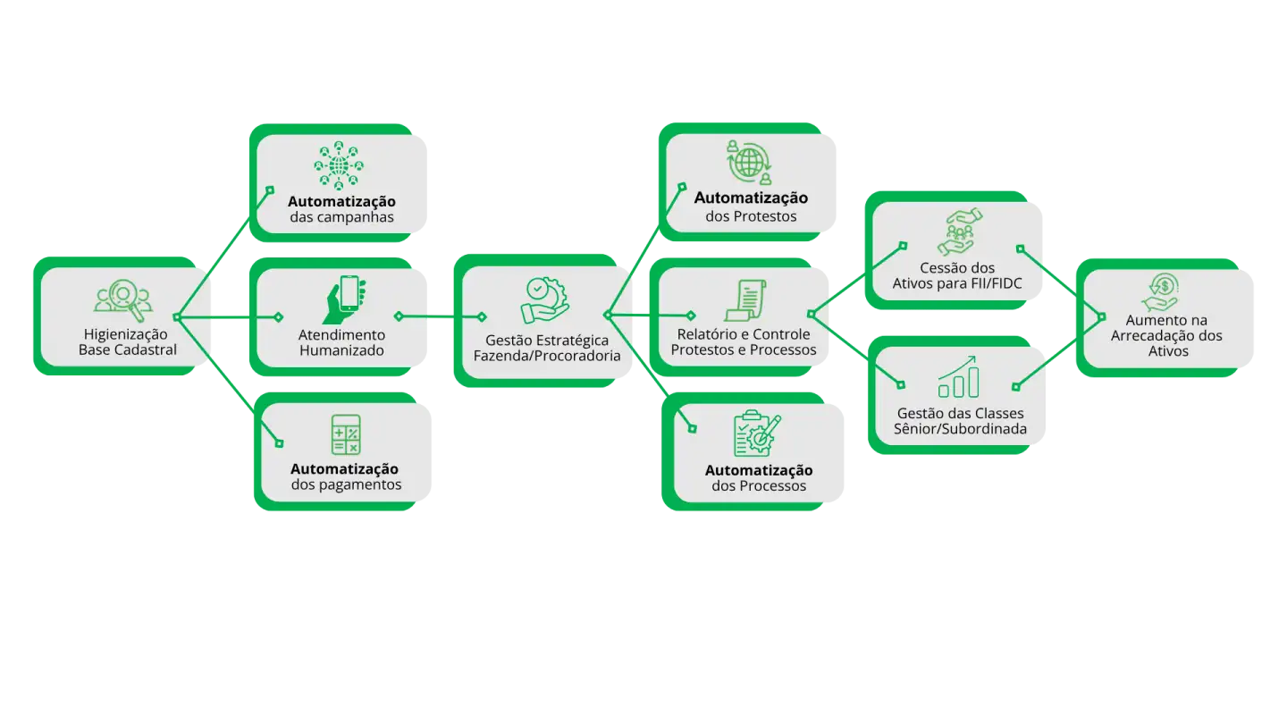 A tecnologia da Govsec facilita a gestão financeira ao integrar os fluxos financeiros e processos de recuperação de créditos públicos. Além disso, a plataforma automatiza a gestão das cessões de créditos, permitindo que o município, RPPS e investidores operem de forma mais eficiente e transparente.